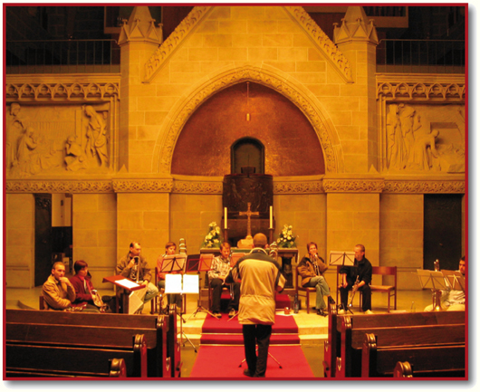 sich jeweils ca. 12 für ein Projekt im Jahr zusammenfinden. Die musikalische